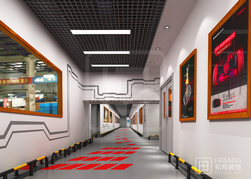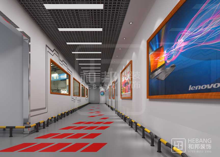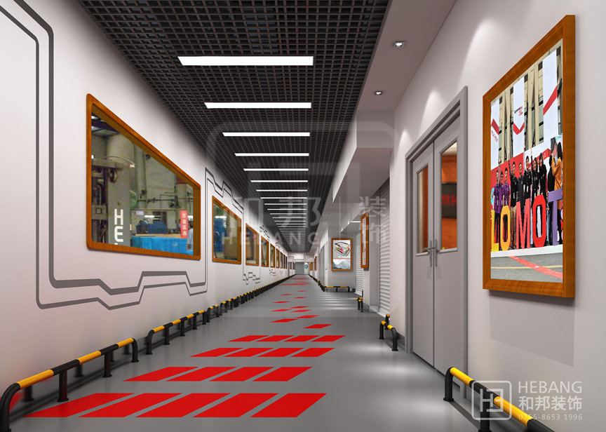 現代感與科技感相結合,墻面飾有太空艙紋理結合地面的紅色指引讓人如臨太空站,一種激動人心的時刻不正是進到展館的時候嗎?